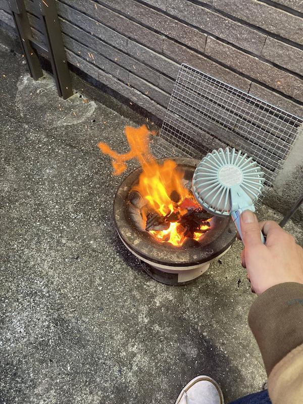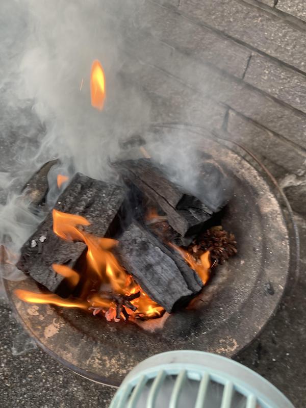 後は火が落ち着くまで待つばかりやね