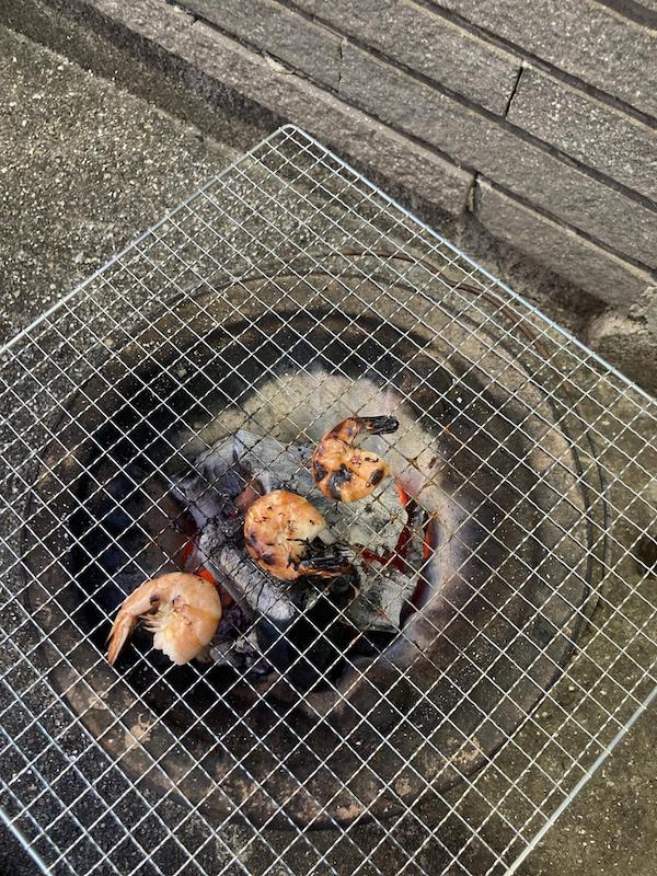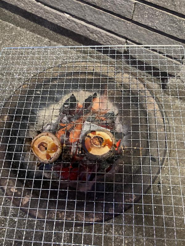 来たらかまぼこを七輪で炙ったのに