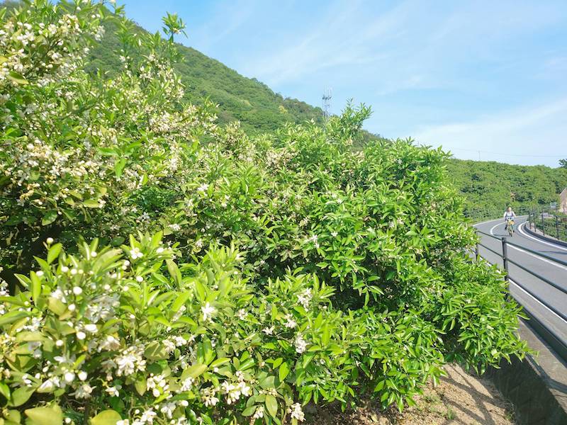 岩城島でも 生口島の怪獣レモンの近くでもレモンの花の爽やかな香りが辺り一面に漂っていた