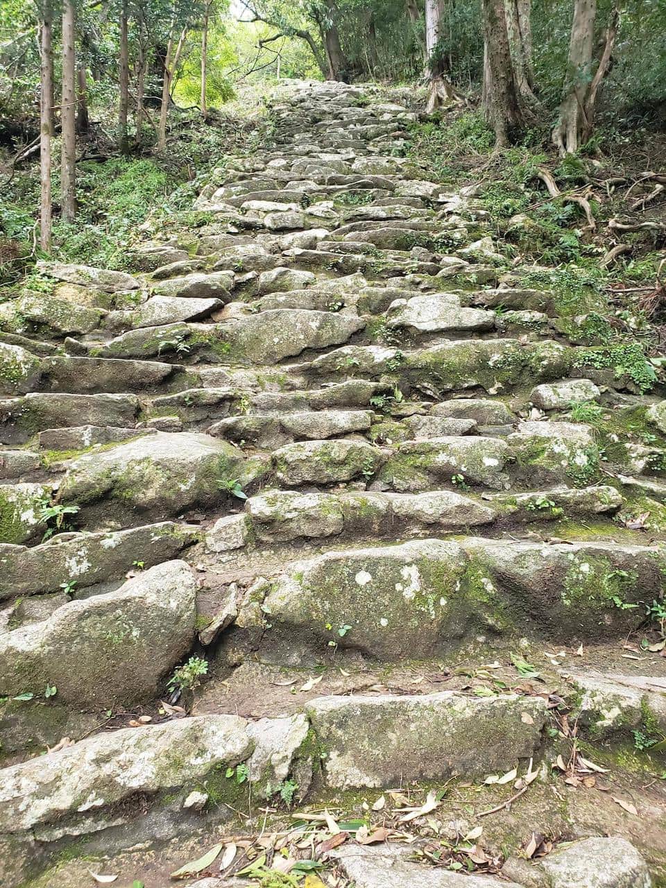 石段だけれどマトモに道として整備されてるわけでなく不規則に石が積まれてる形なのでマジで危ない
