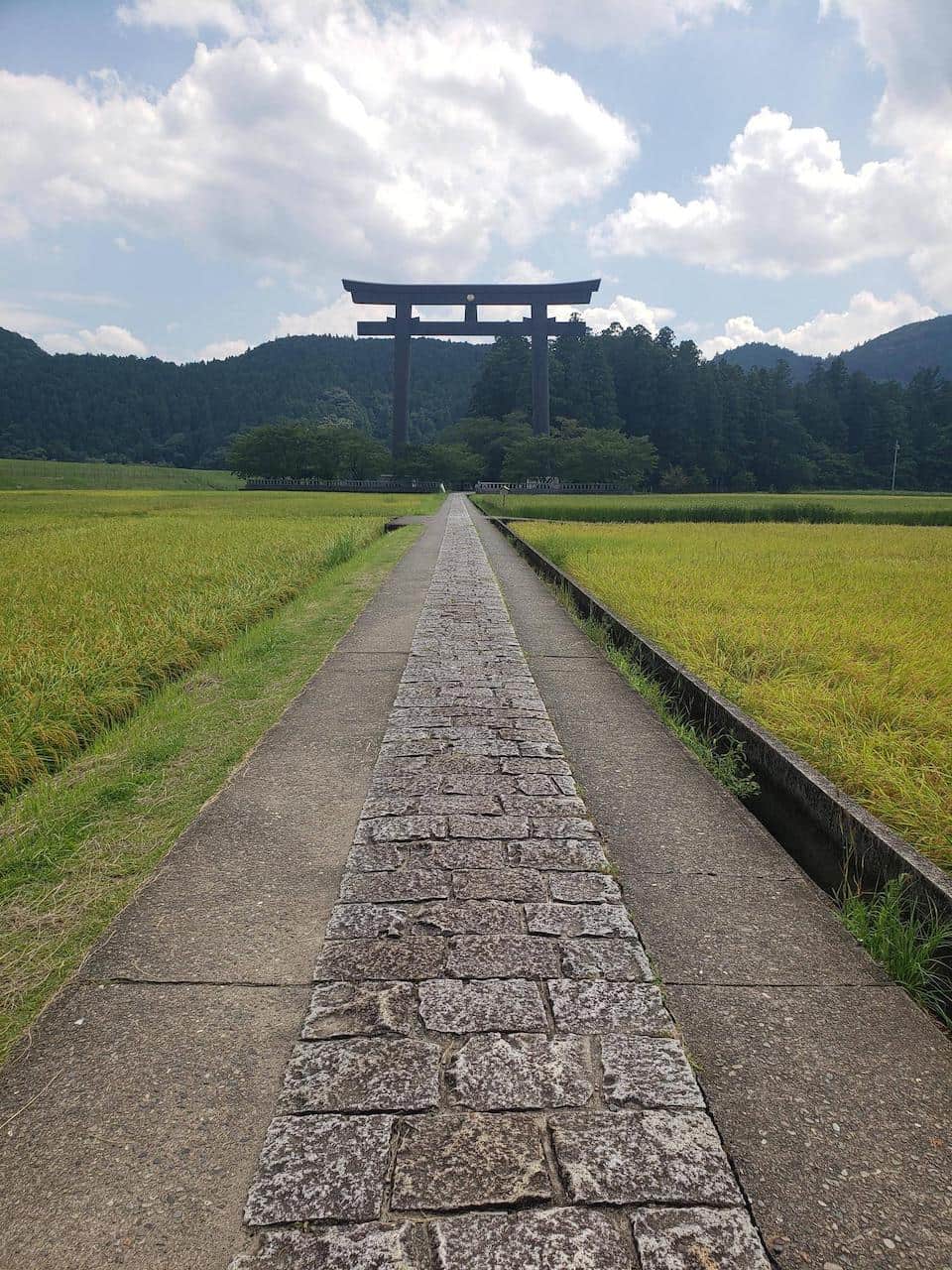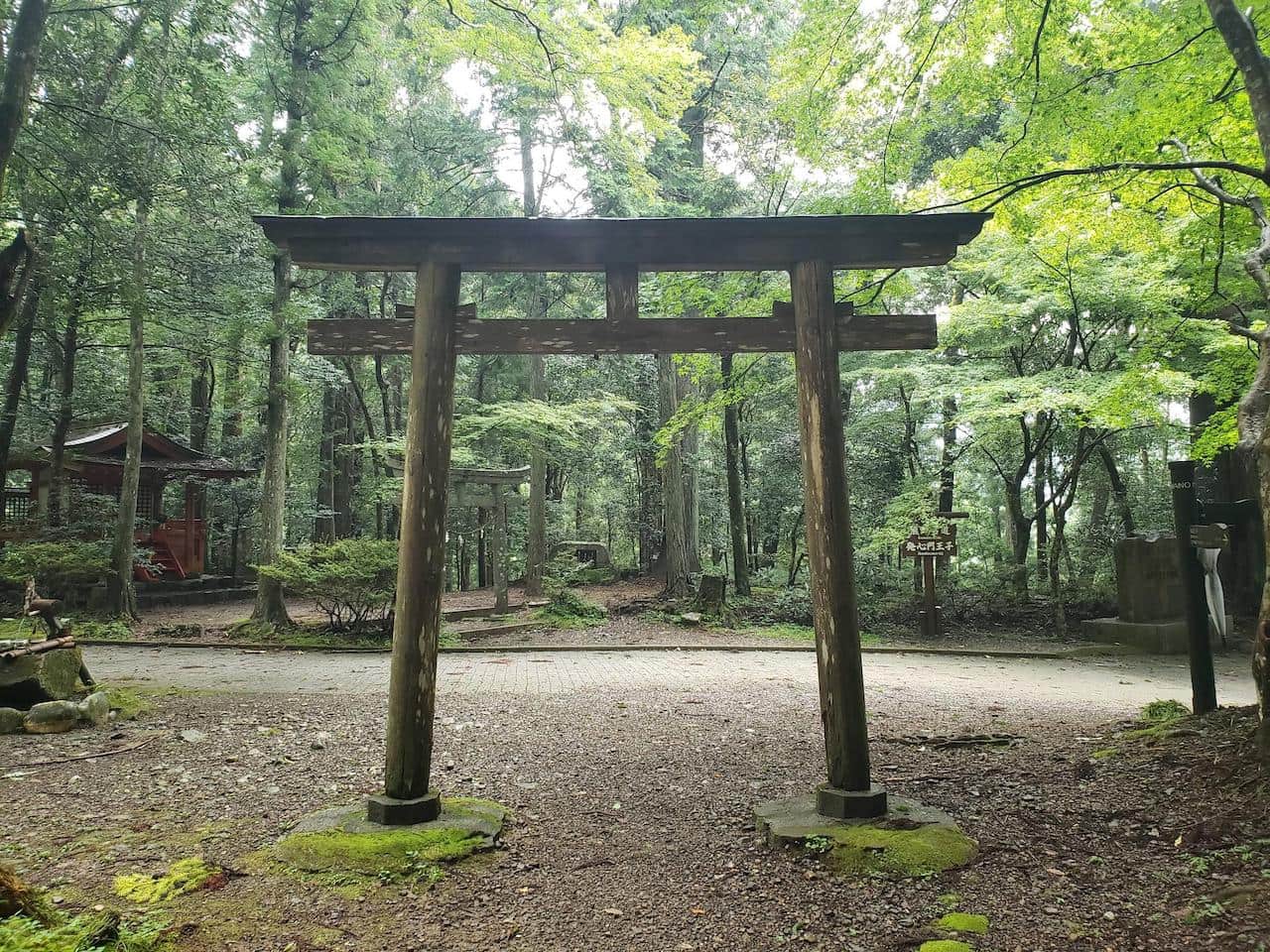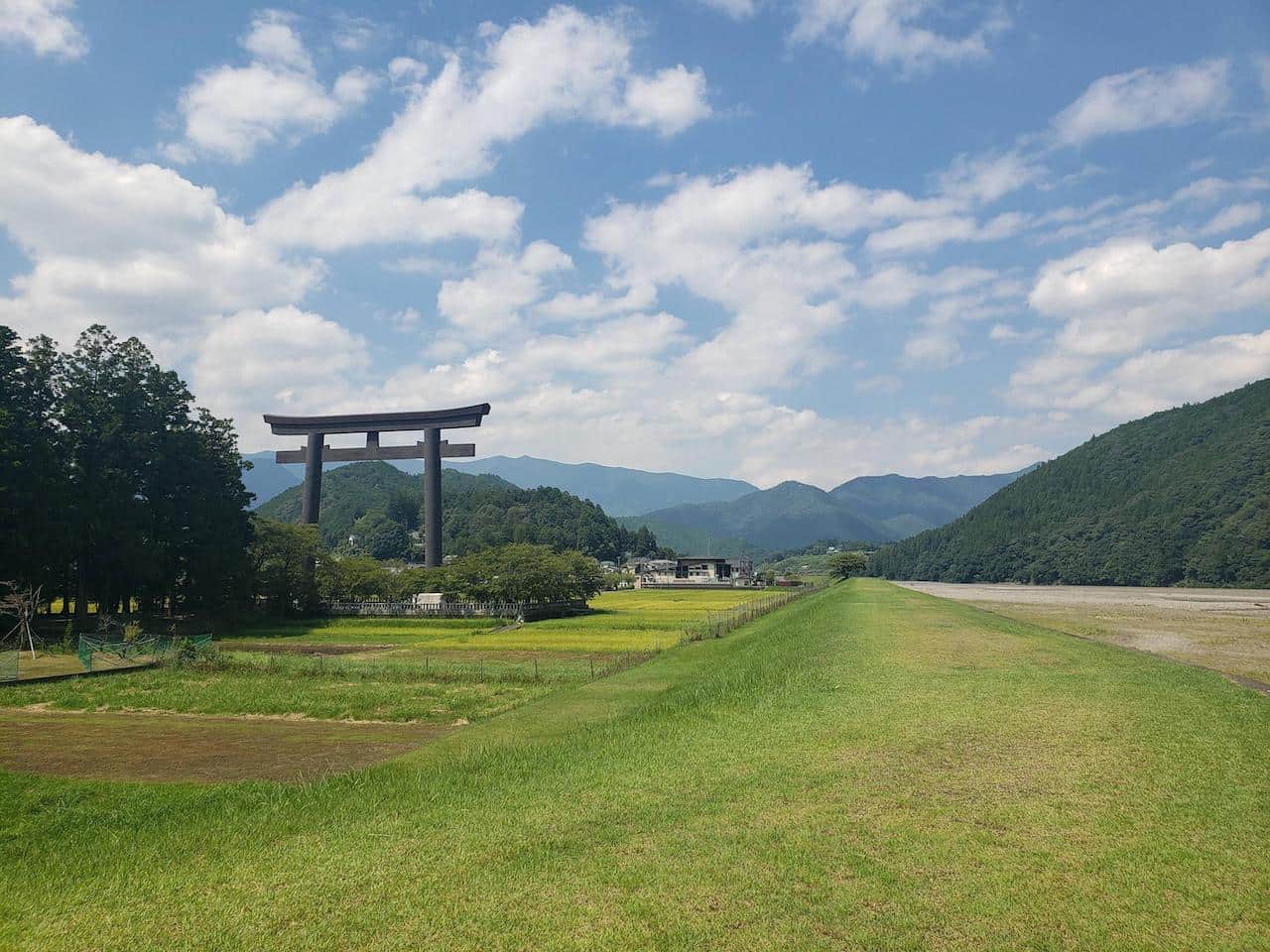 この場所は熊野川の中州にあたる部分で、元々ここに熊野本宮大社があったけど明治時代の大洪水で甚大な被害受けてから今の位置に移動になったと