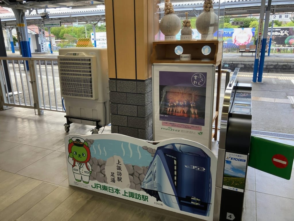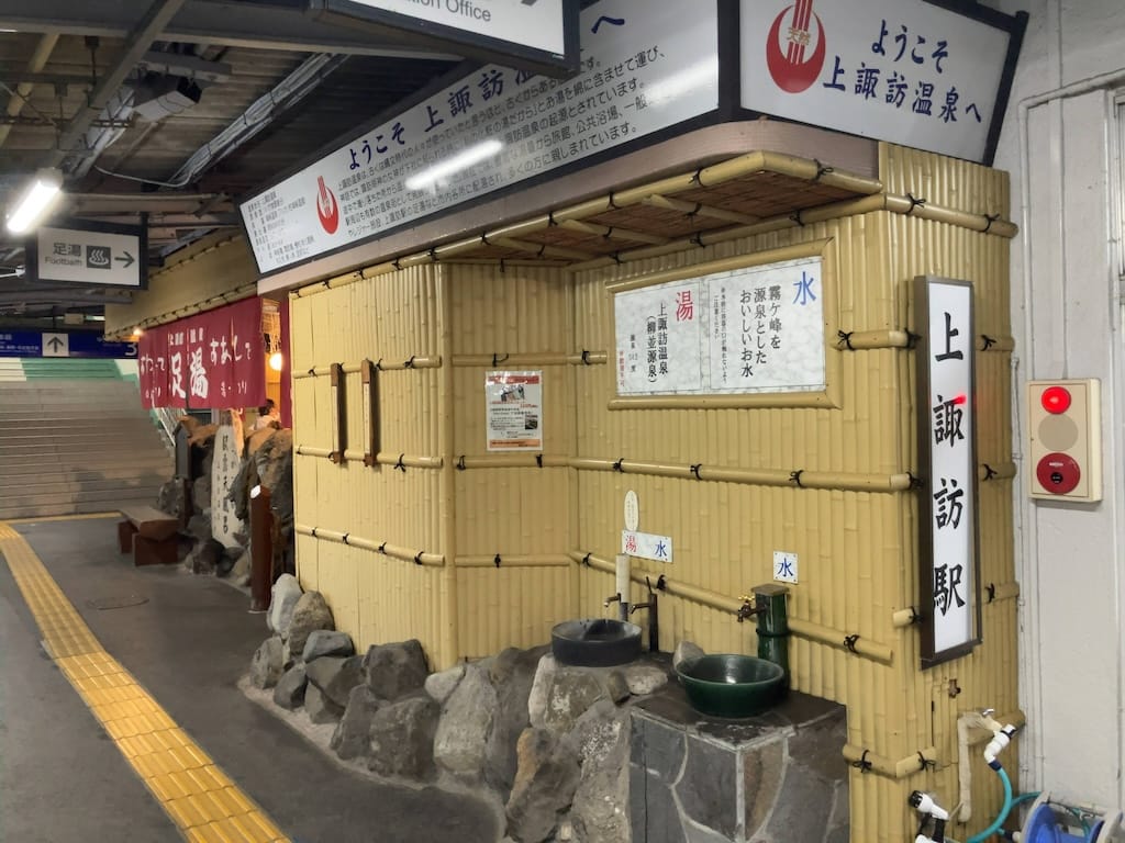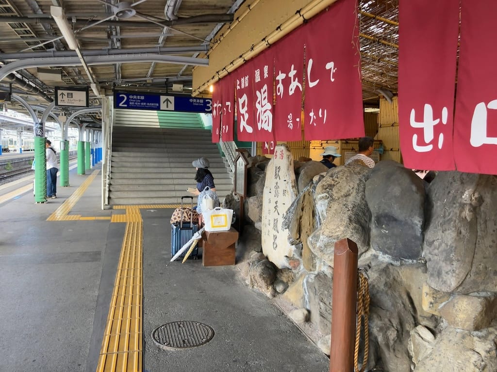 茅野行きの電車で上諏訪駅の足湯に行って甲府行きの電車を待つことにした