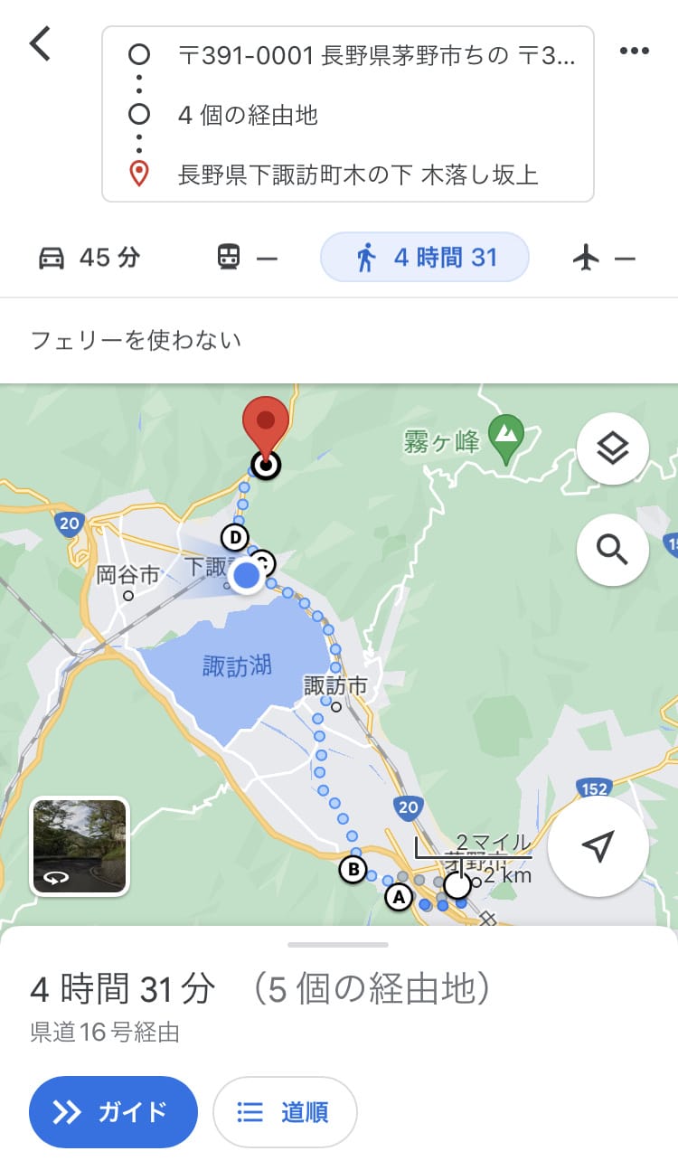 下諏訪から2社と、茅野から2社は歩いたけど、下諏訪~茅野間も徒歩はハードやなあ