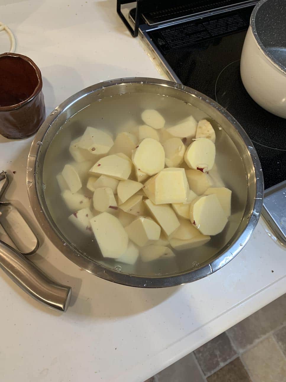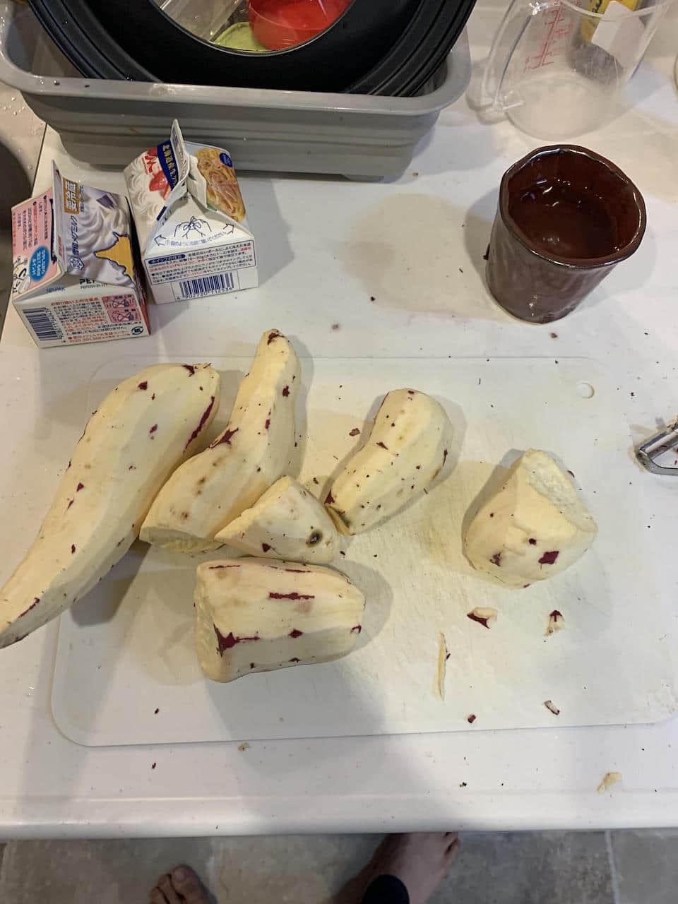 まず皮を剥いて適当に切って水に漬けます