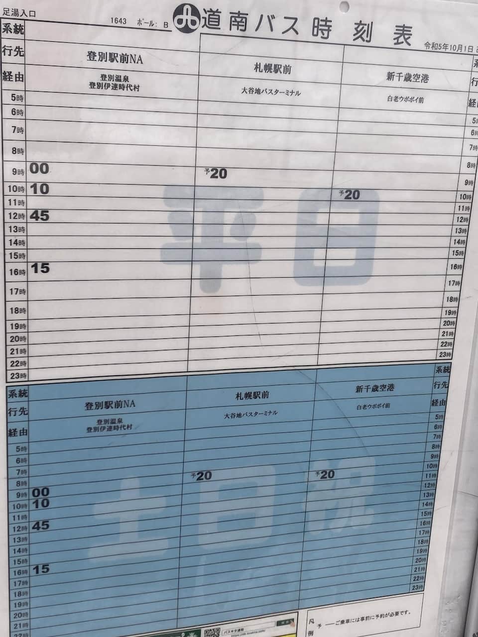小樽→札幌→登別→苫小牧 約4000円(電車+バス)
