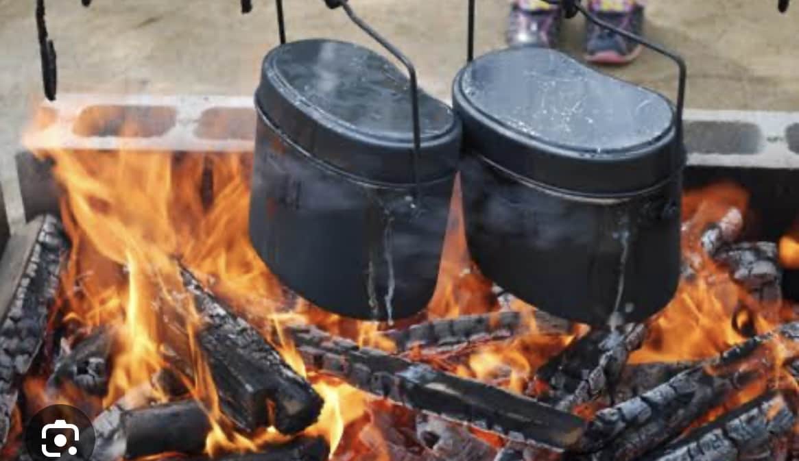 火焚くと調理器具にすすがね……