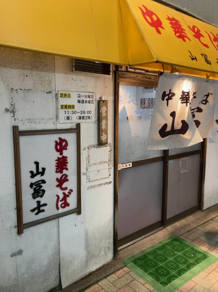 岡山ラーメンと言えば上から10番以内に名前が出てくる老舗の山冨士。特筆するようなラーメンではないが飽きの来ない味。それが老舗たる所以