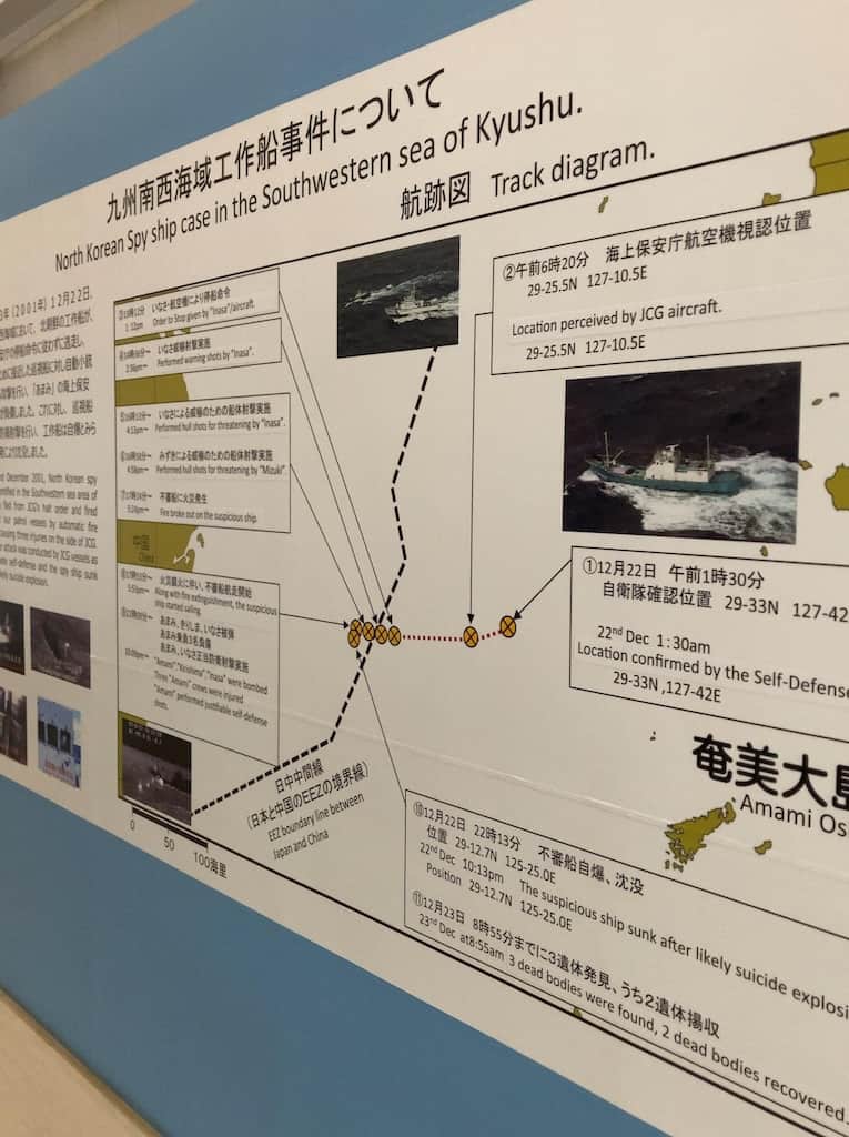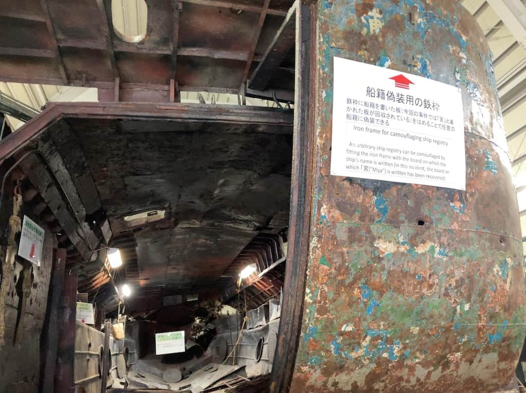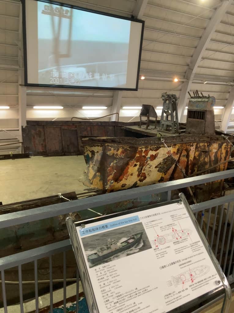 海上保安庁との銃撃戦を行い逃げ切れないと悟り自爆して沈没した工作船を引き上げて展示してる