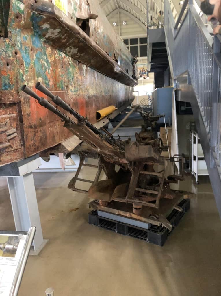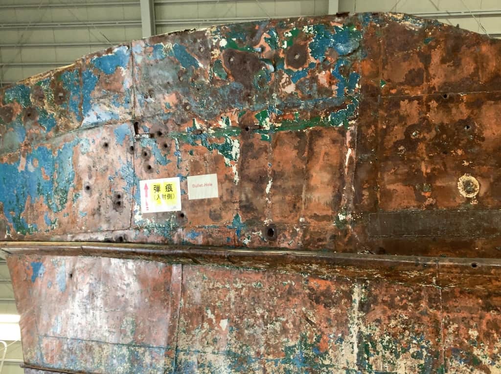 船体のあらゆる箇所に被弾した弾痕が生々しい