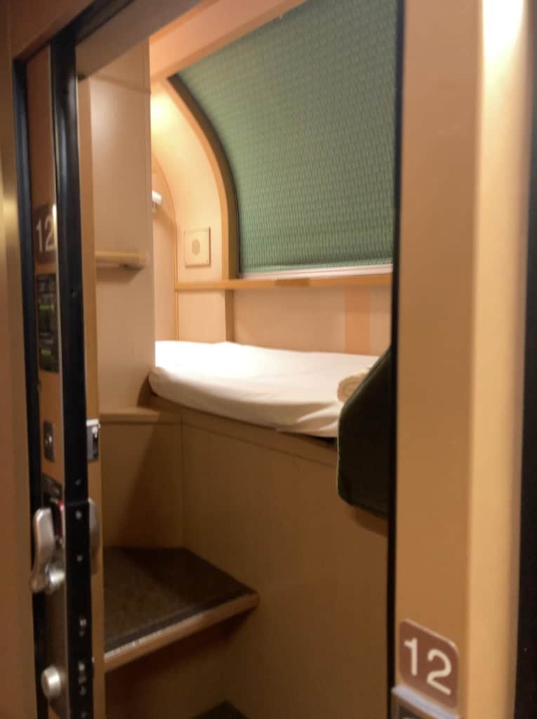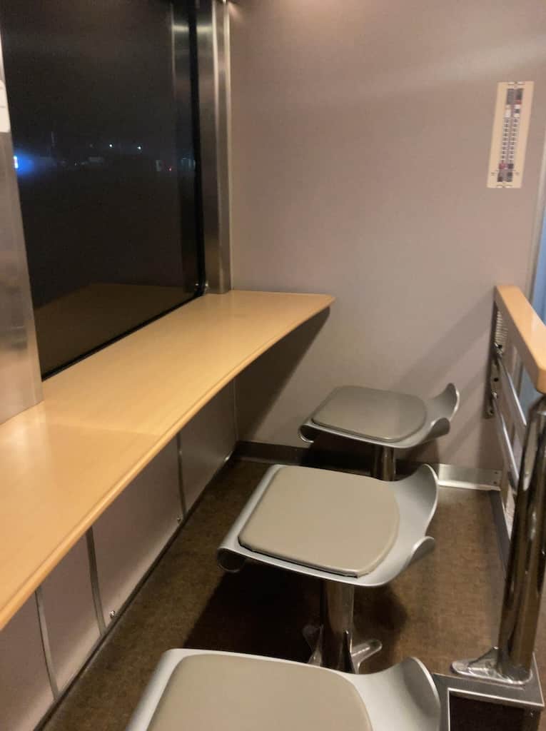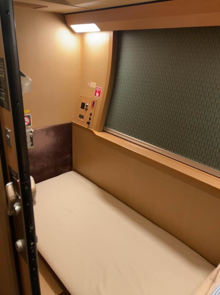 何が凄いか簡単に言うとサンライズ瀬戸出雲の一般的な2階建の個室ではなく平屋の個室でしかも編成の一番先頭にある部屋なのだ。向かいに部屋が無い為、実質この編成でたった1室しかない事になる