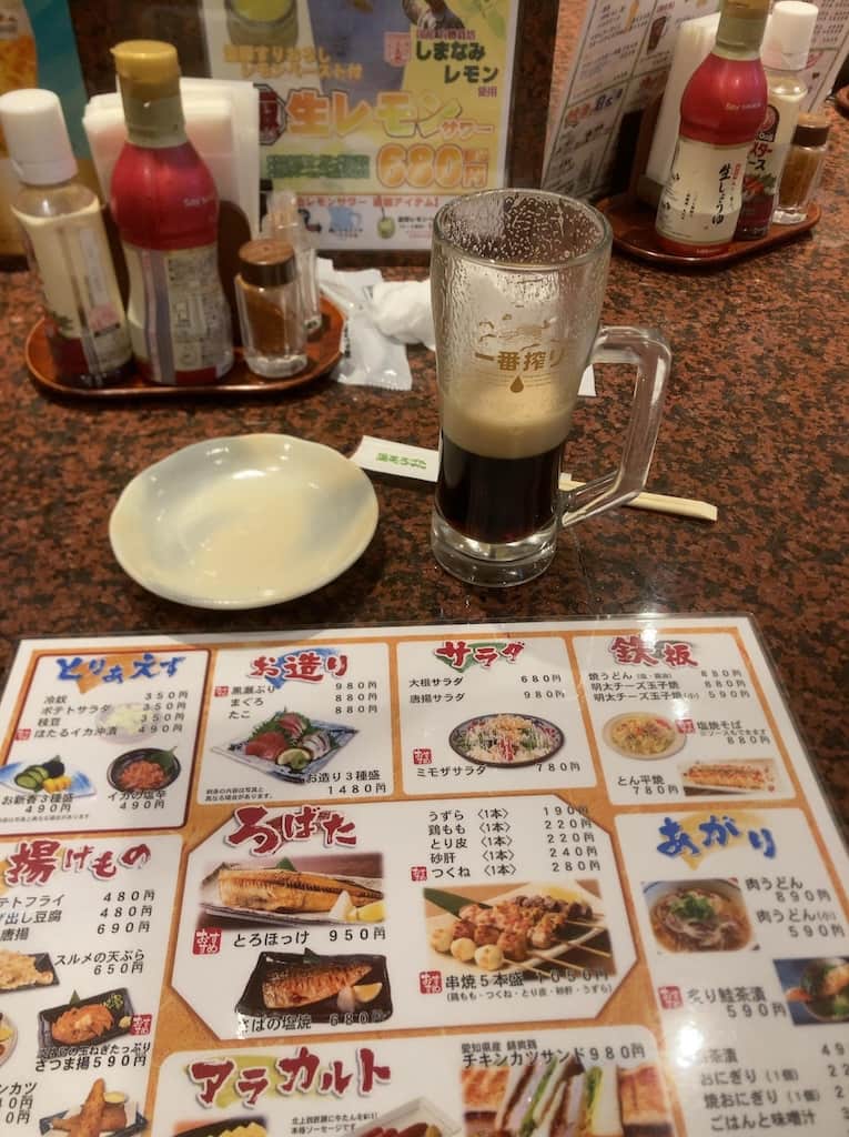 一旦駅を出て晩飯を食いに行く