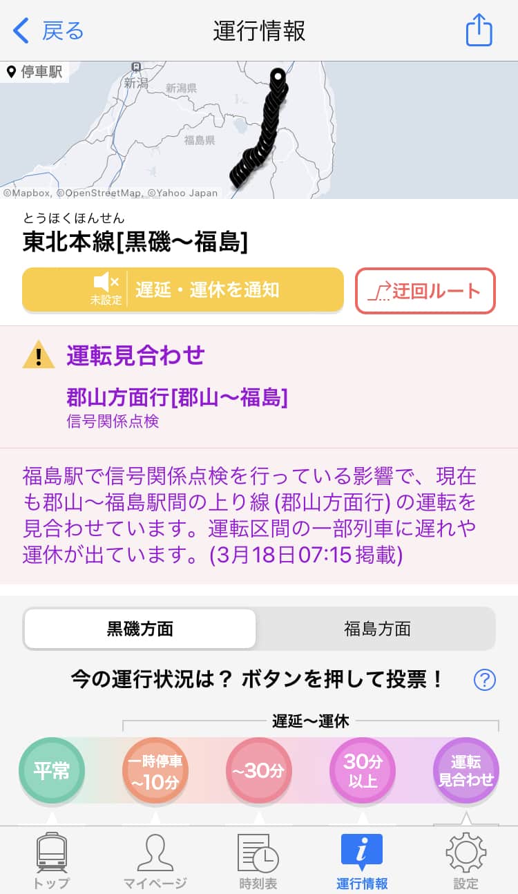 東北本線ちゃんと動いてる?HPによると黒磯~新白河、郡山~白石が運転見合わせになってるが