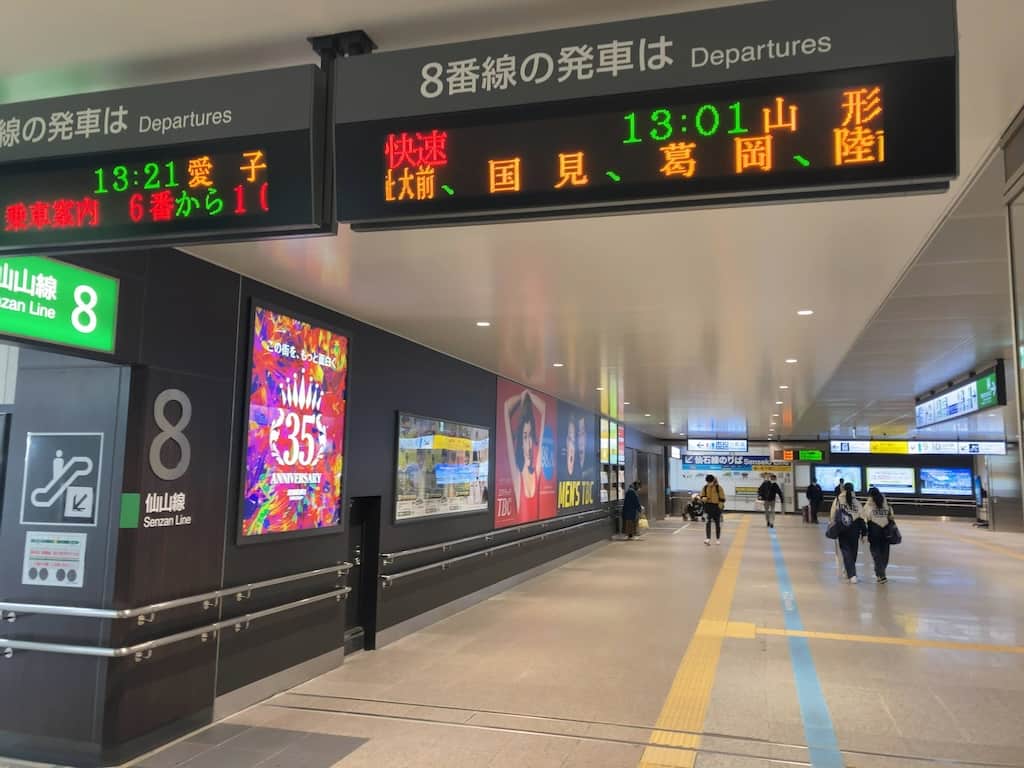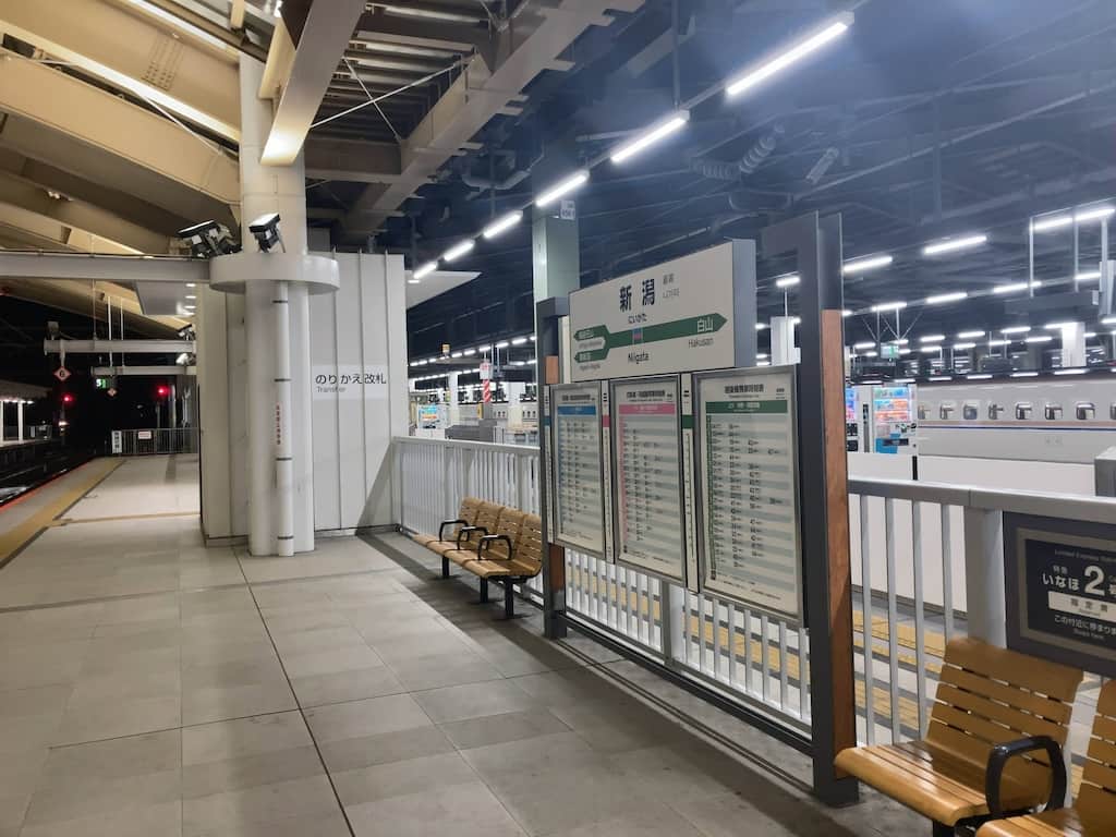 仙台(仙山)山形(奥羽)米沢(米坂)坂町(羽越白新)新潟(信越)長岡、長岡に21:38着