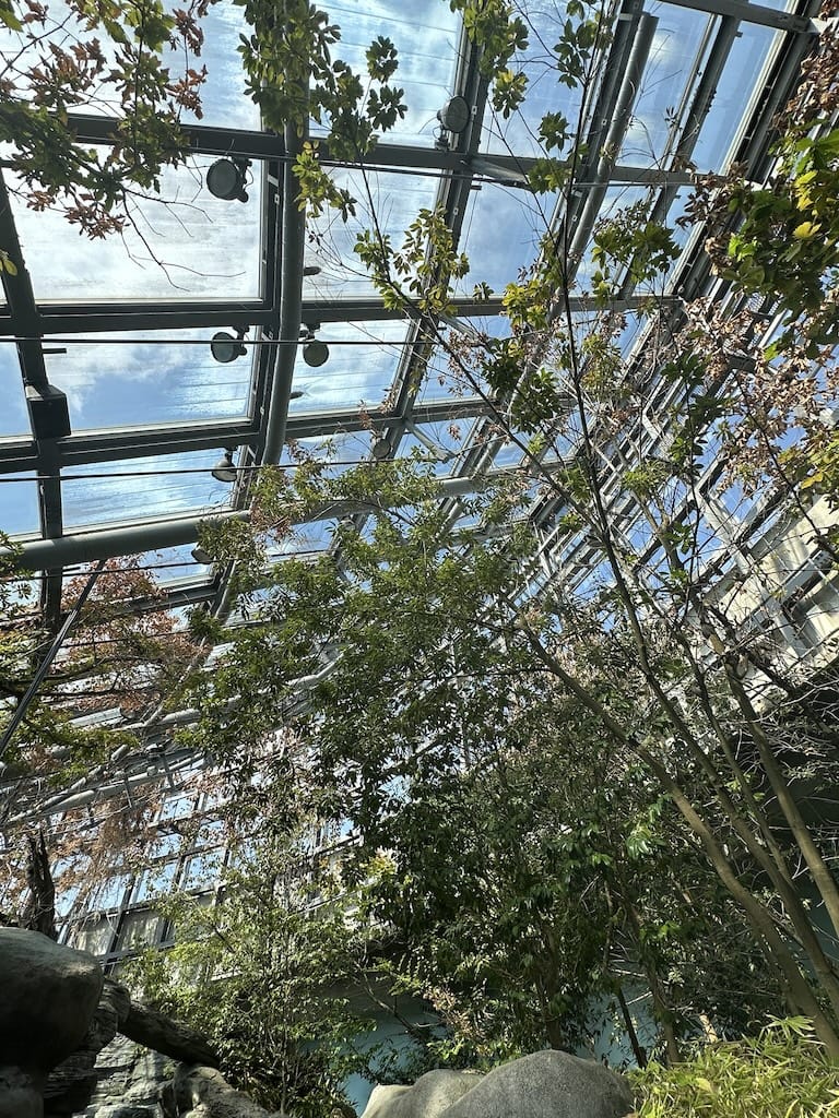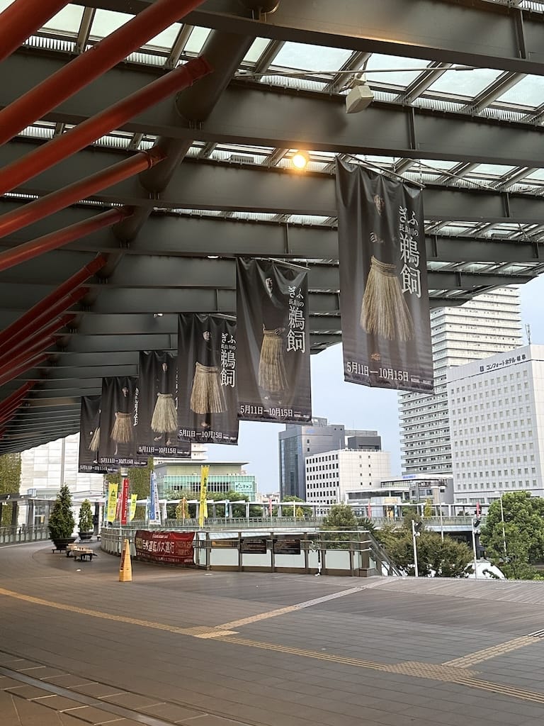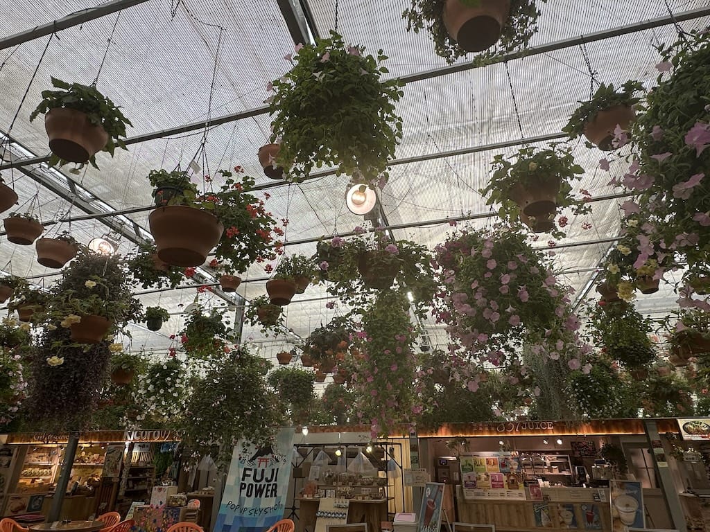 奥の方にスカイガーデンっていうスペースがあって天井に花がぶら下がってた。飯屋とお土産屋が合体したエリアやな。