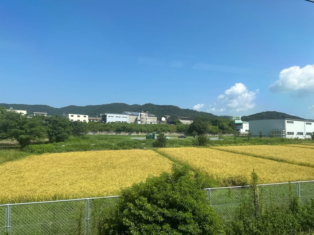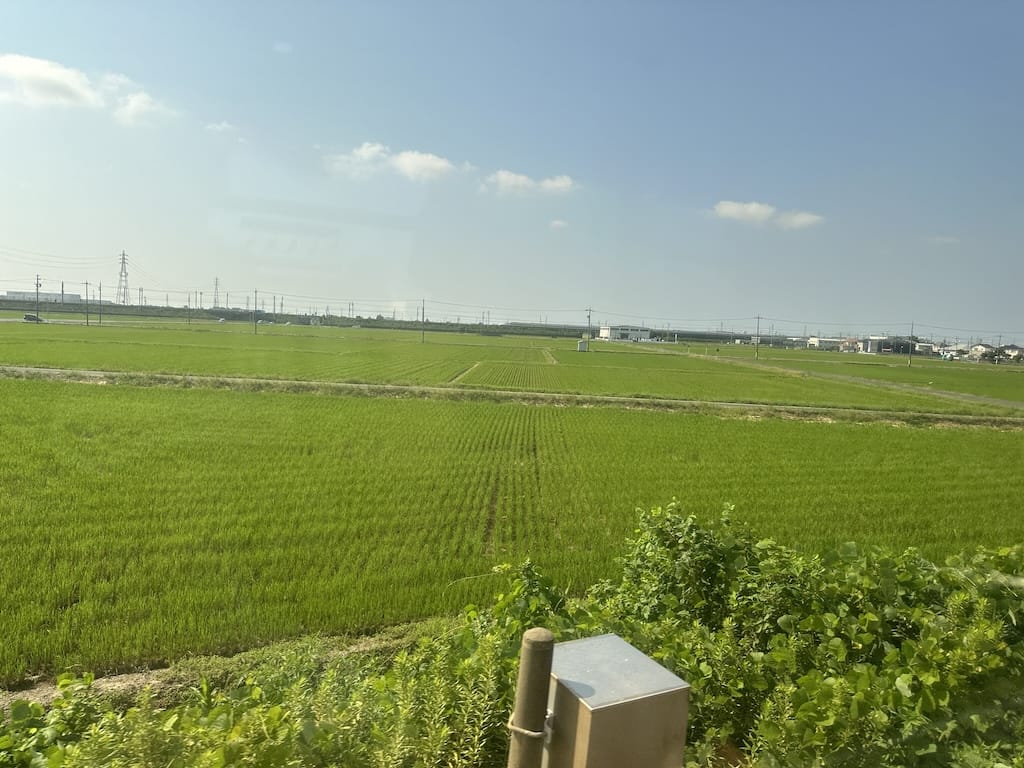 今掛川付近なんやけどええ感じの田舎の風景やな。天気も良くて旅行日和や。