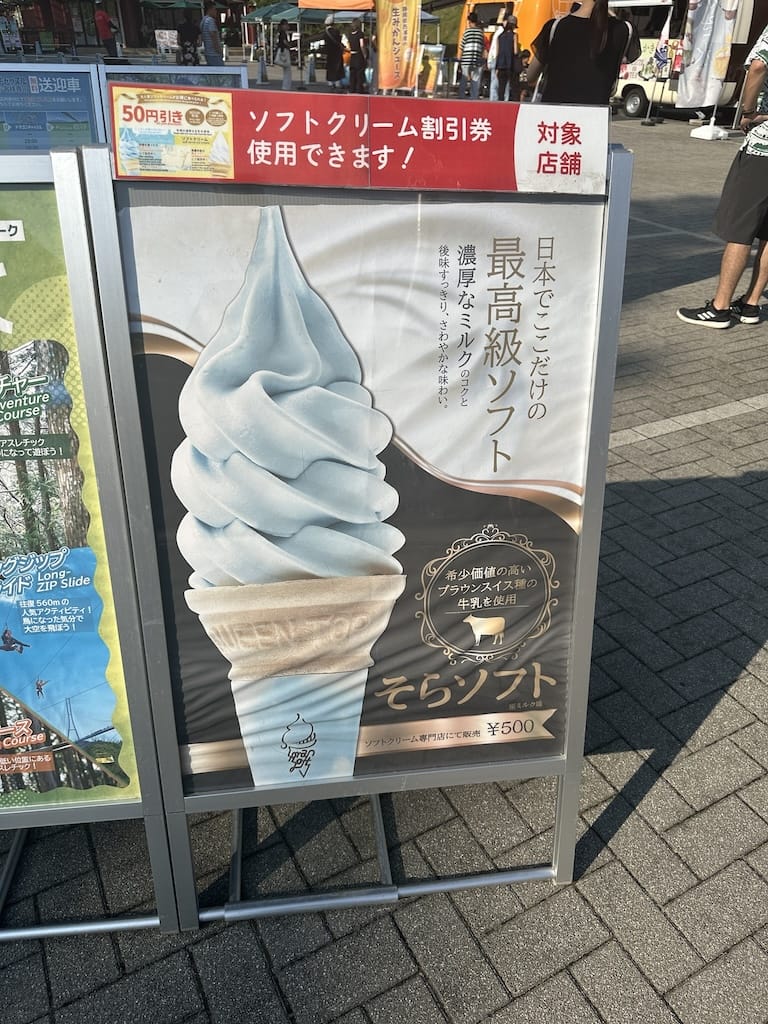 スカイソフトクリーム。青色のソフトクリームで普通のソフトクリームより濃厚で美味かったで。