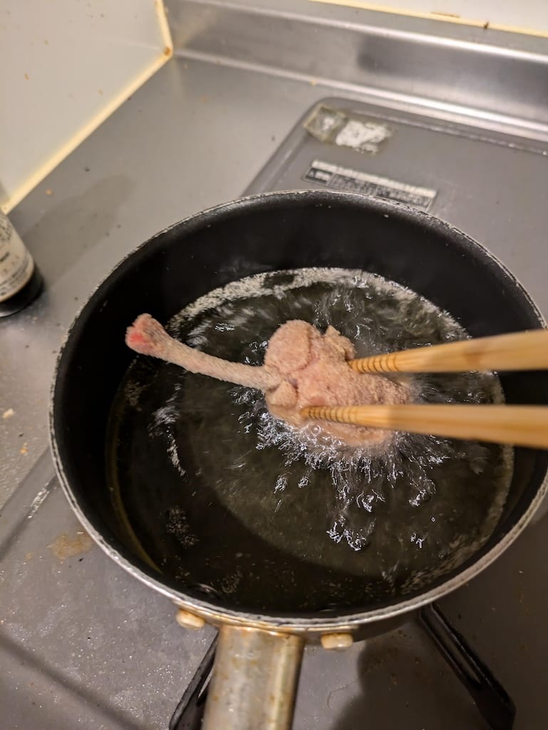 唐揚げ粉まぶしてサラダ油で揚げただけやで