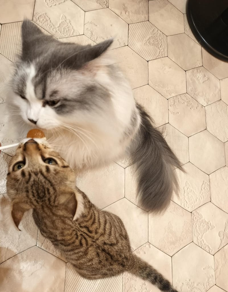 猫用のおやつあげたらめっちゃ囲まれて最高の気分だったわ