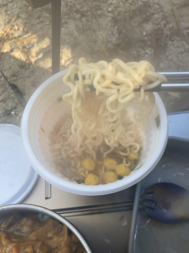 エースコックよりも更にチープな味がキャンプとベストマッチですね