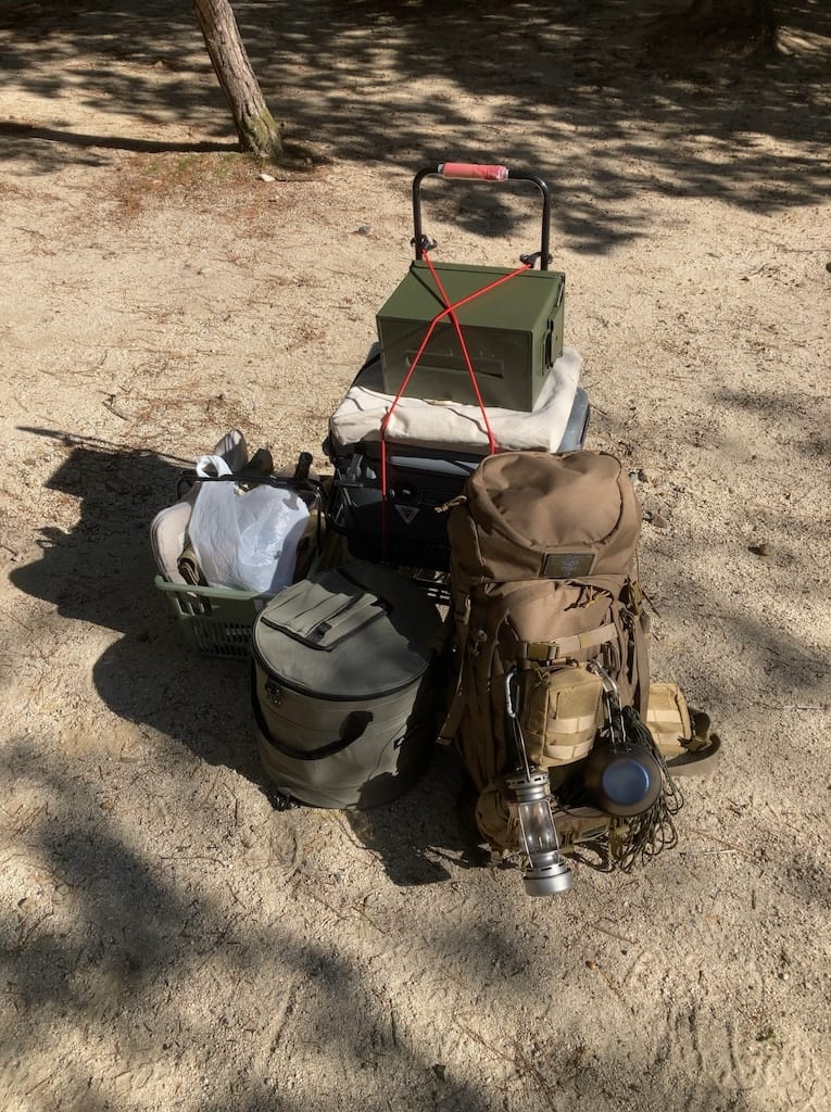 今回はリュック1つで完結する徒歩キャン装備に色々拡張していくスタイル