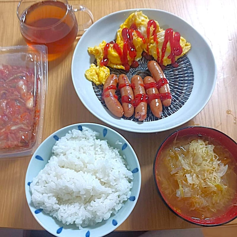 白飯とウインナーて相性よいよなー