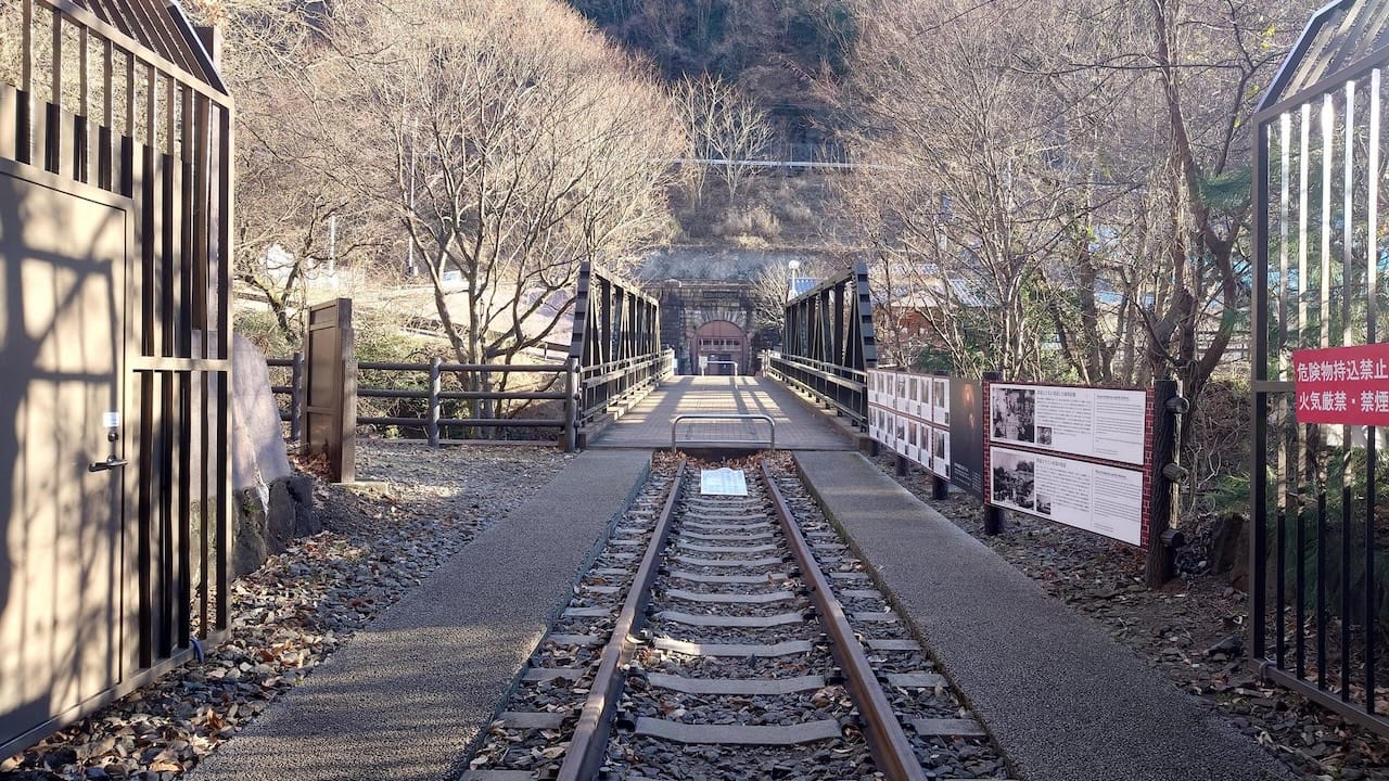 右が甲州市が遊歩道として國鐡から譲渡された大日影トンネル