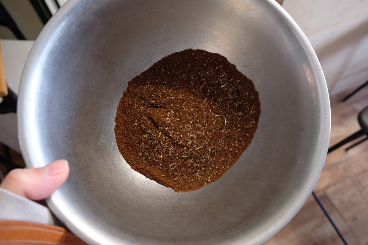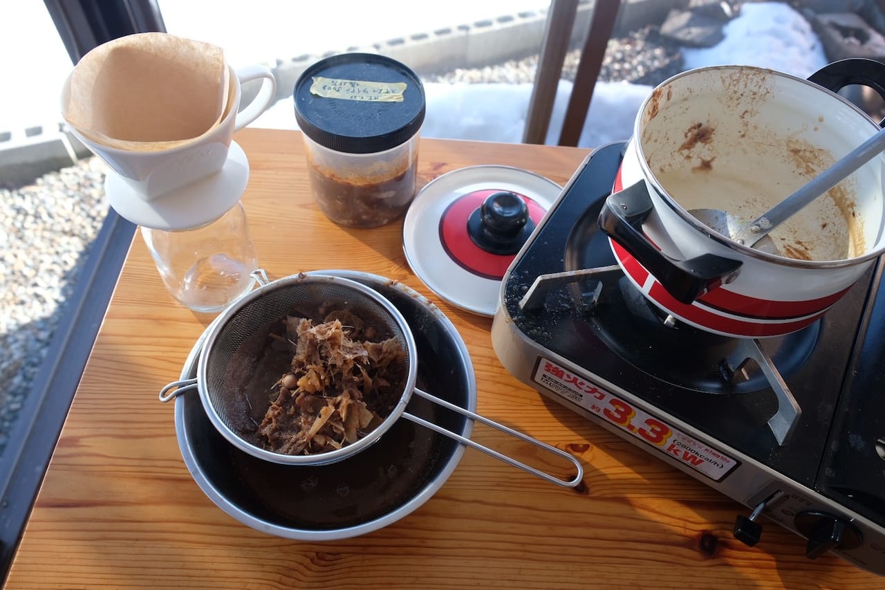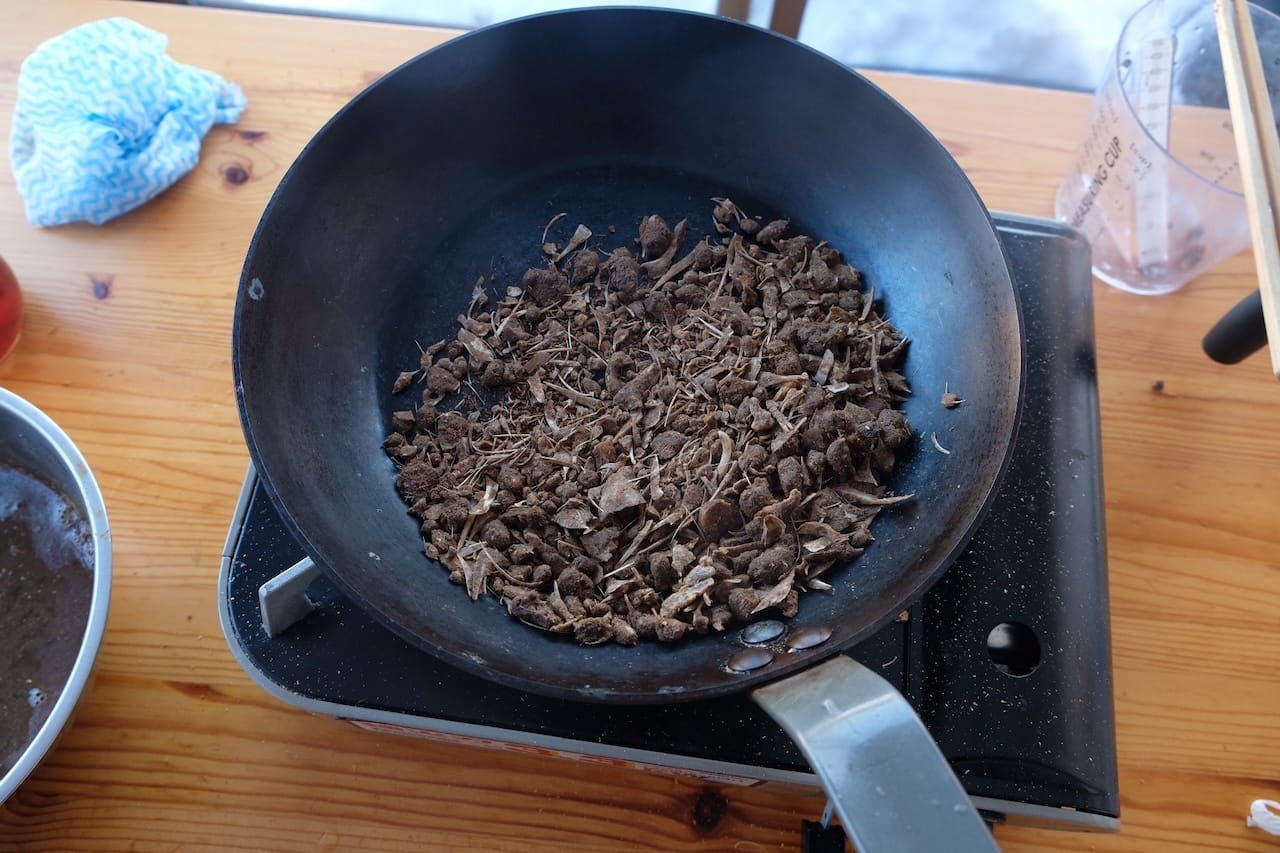 今回は大きい骨を取り除いたあとにフライパンで炒って魚醤パウダーっぽくしてみたで