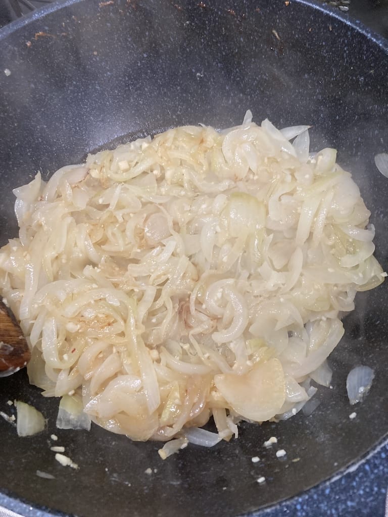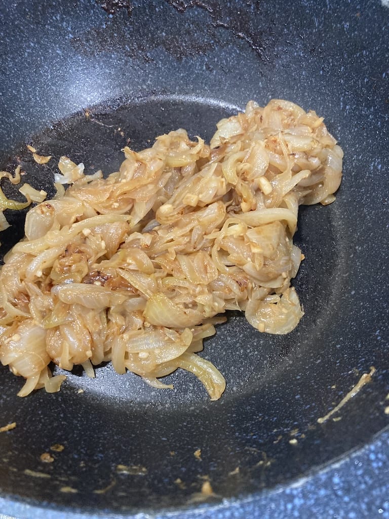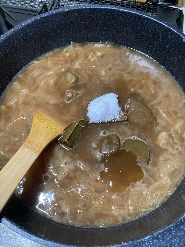 途中何度か水を足して炒めるとかなり時短飴色タマネギになる
