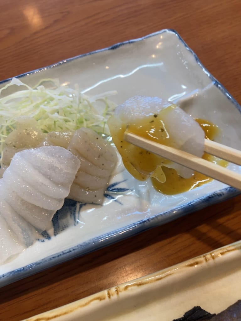 この地域の特産品のコンニャクを刺身で頂く