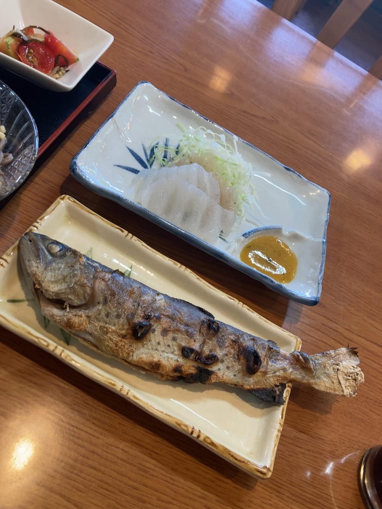 焼きたての山女魚(西日本だとアマゴ)は塩がバッチリ効いてホクホク