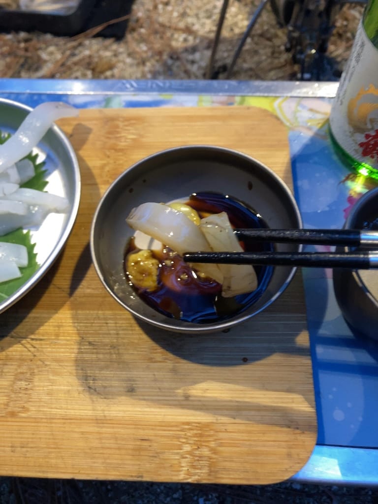 イカ釣って、刺身にバター醤油焼き、漬け丼するから