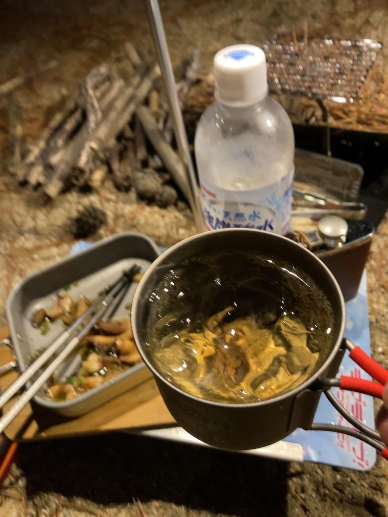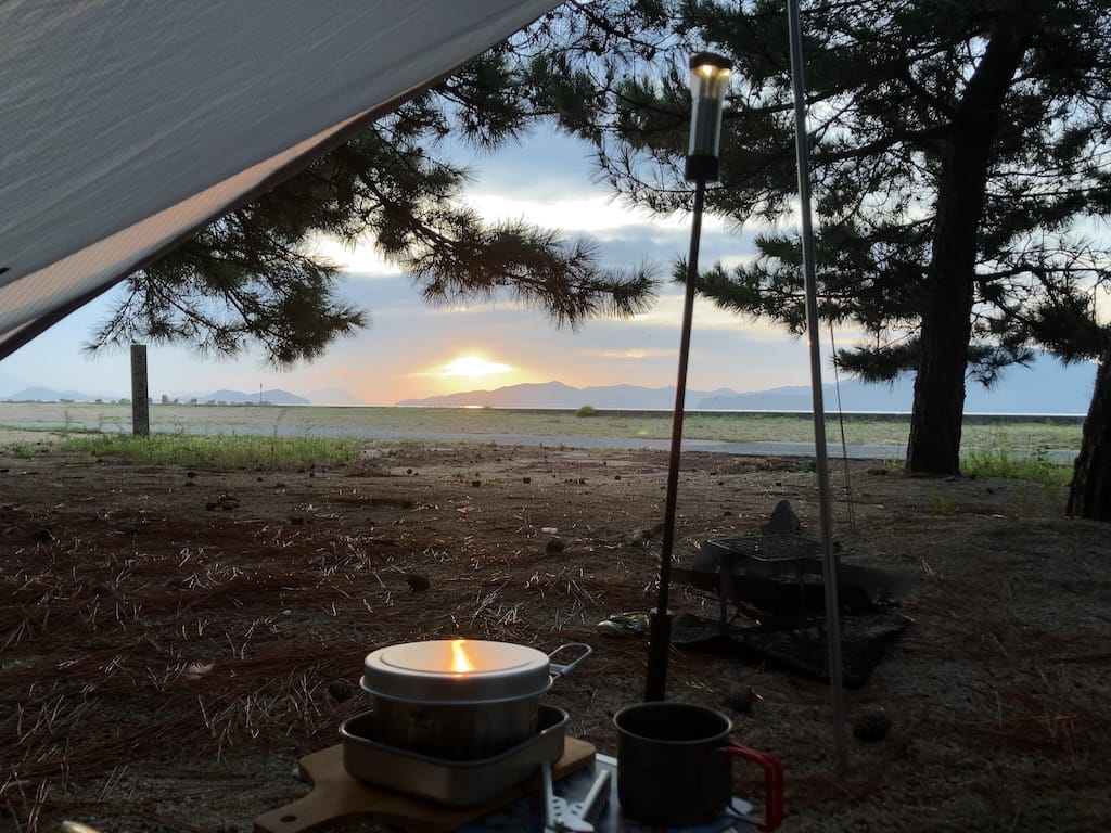 ドーム型のソロ用の茶色で薪ストーブ対応じゃないすか?