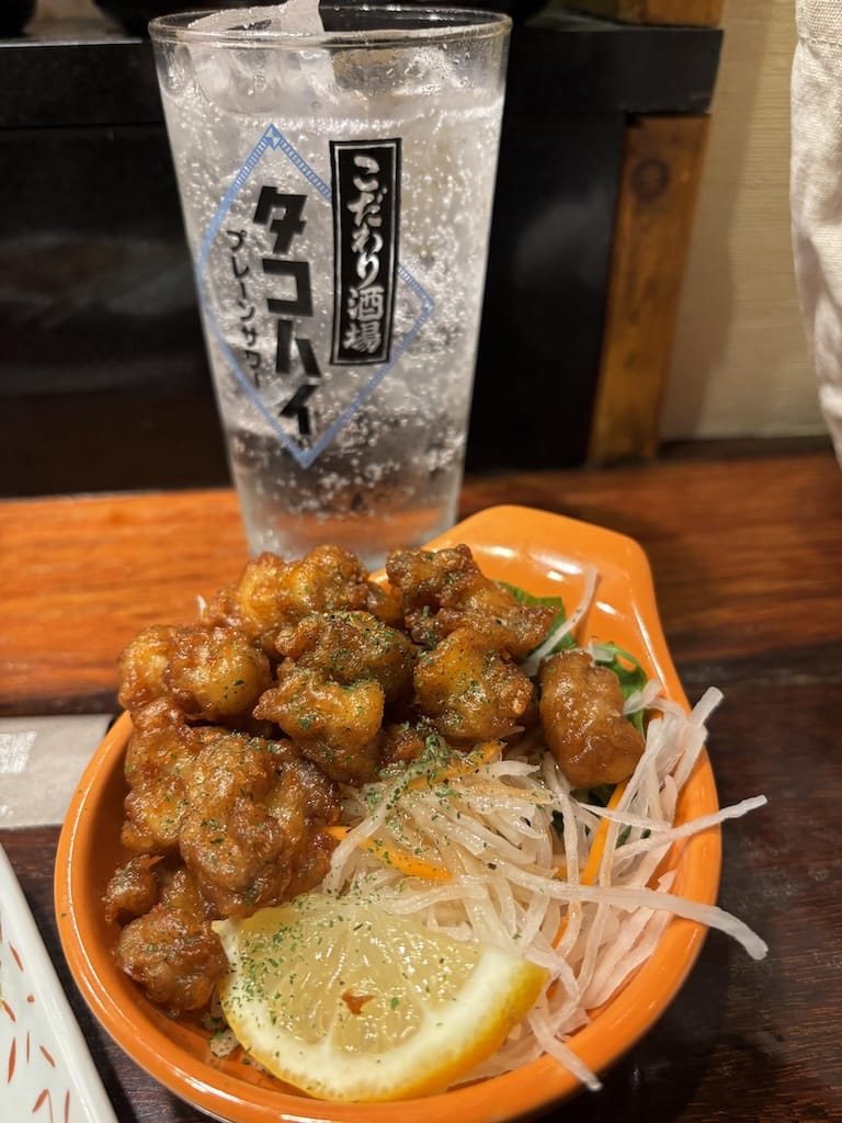 鶏皮ポン酢は焼き鳥っちゅーよりは、揚げた鶏皮におろしとポン酢で食べるやつやな。んまいのよ~