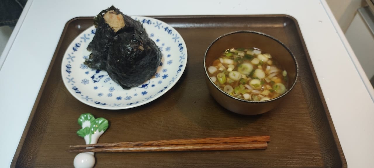 よるご飯はおにぎりとお味噌汁♪