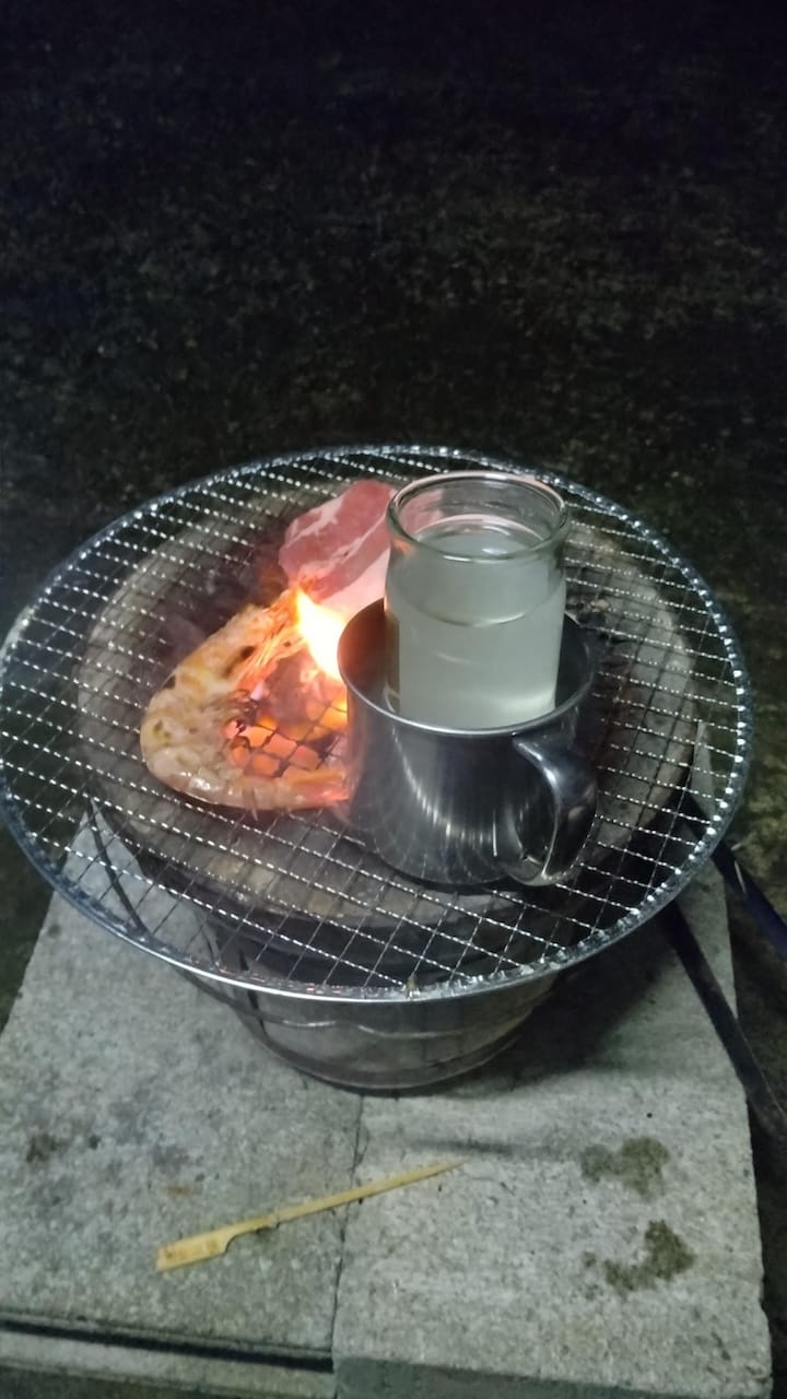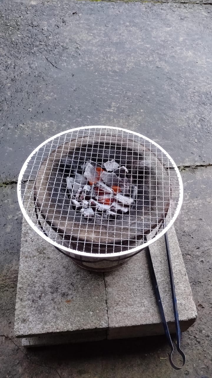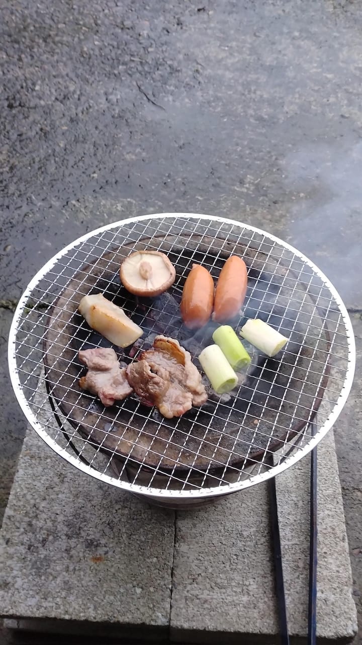・田舎住みワイ、クソ寒い中七輪で肉を焼く