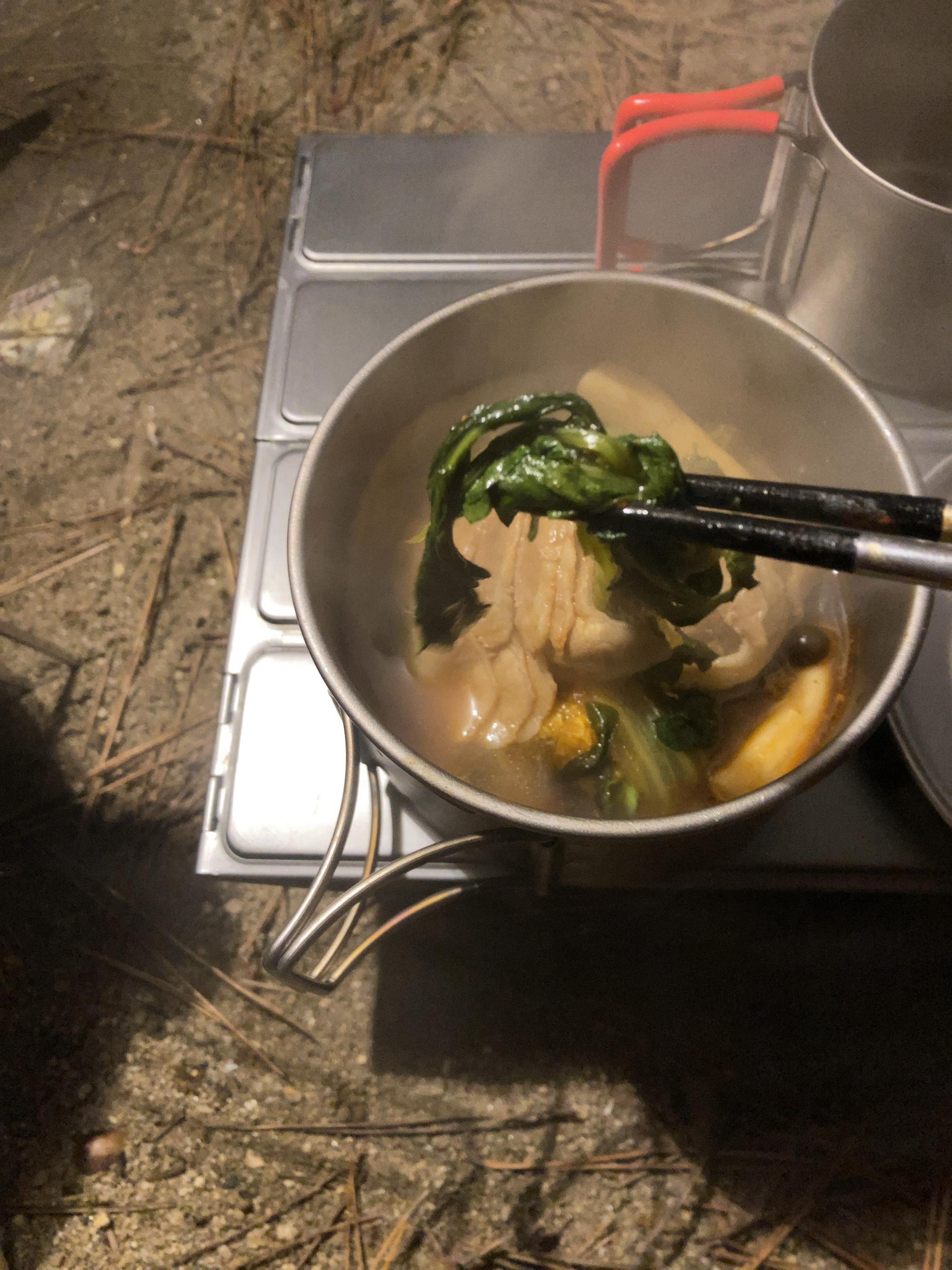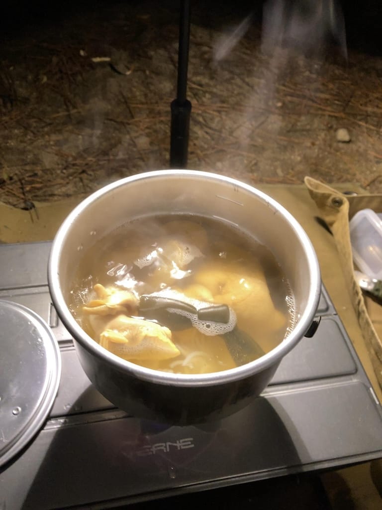 調理用に焚き火台は持ってきたが薪集めるのダル過ぎw