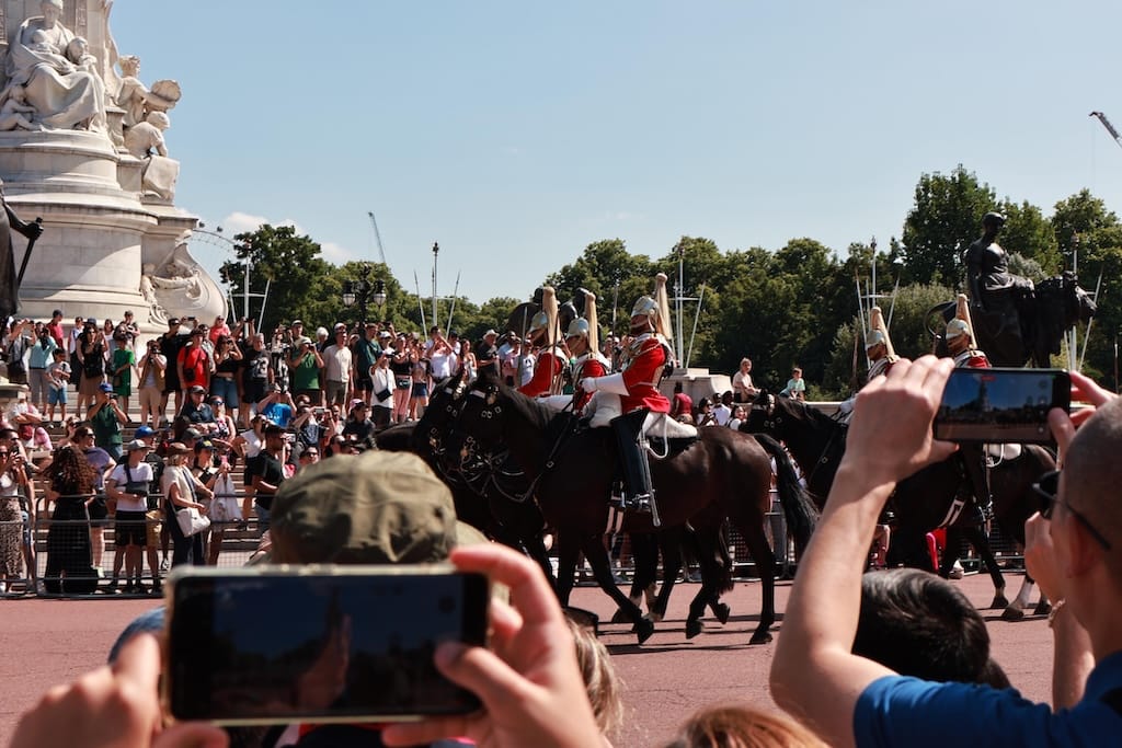 バッキンガム宮殿の衛兵交代式はほとんど毎日行われてて、華やかな制服、行進、バンド演奏を間近で楽しめるで