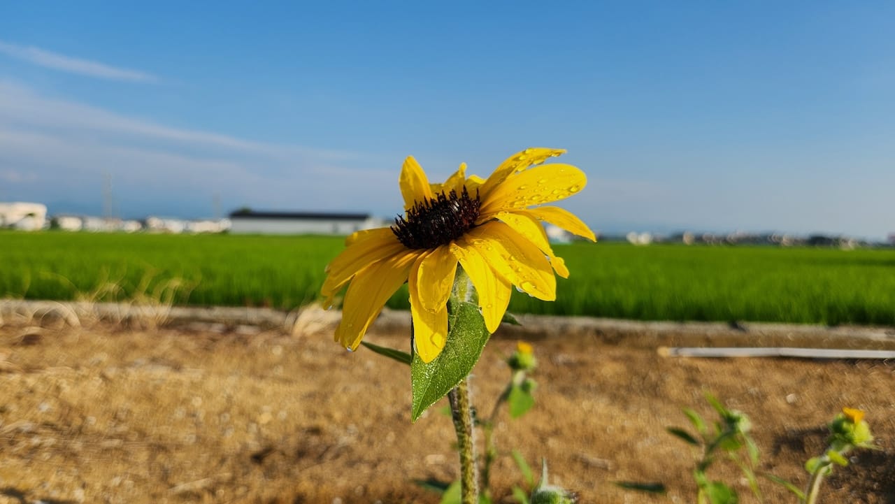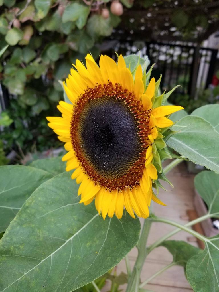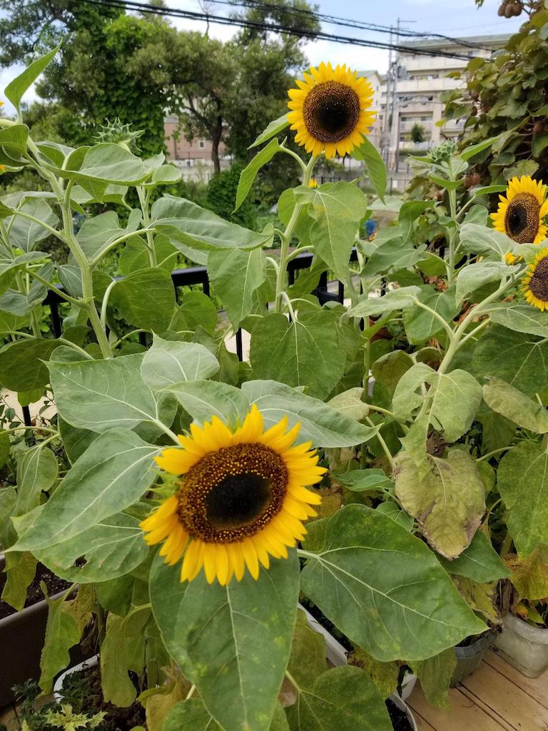前にヒマワリが咲いたら